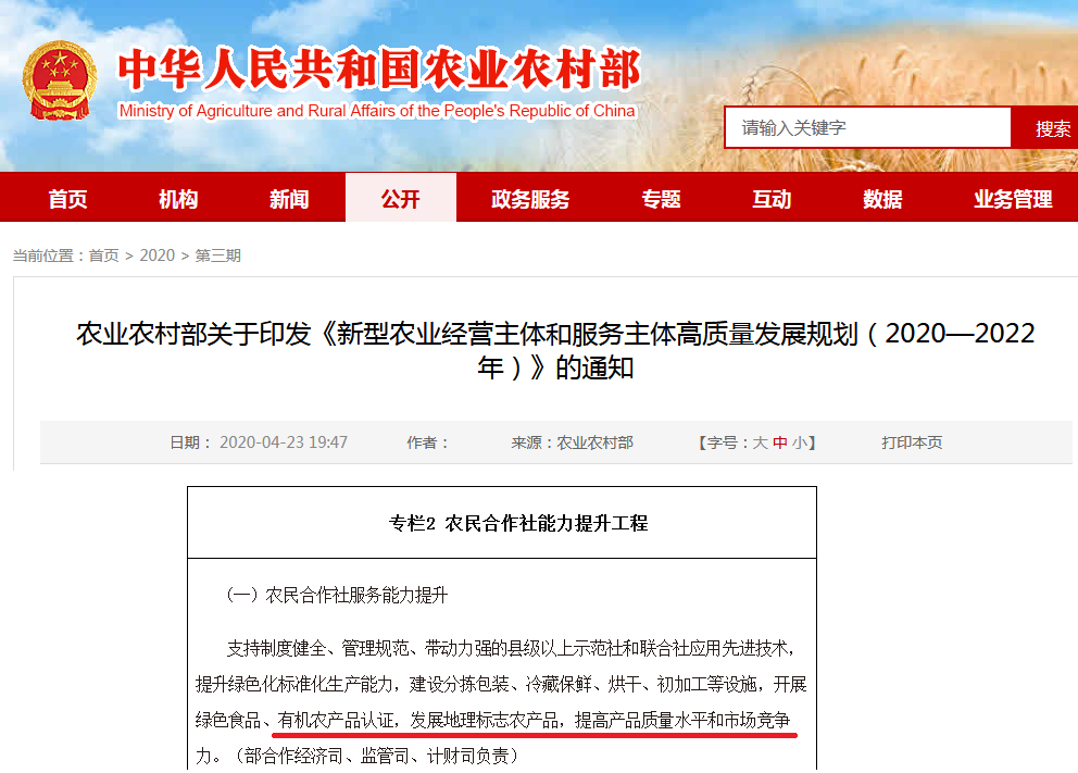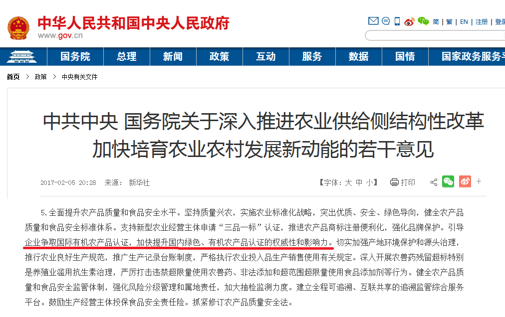 意見指出,“引導(dǎo)企業(yè)爭取國際有機農(nóng)產(chǎn)品認證,加快提升國內(nèi)綠色、有機農(nóng)產(chǎn)品認證的權(quán)威性和影響力。”
