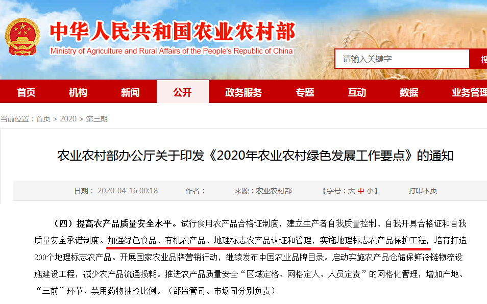 通知對于“加強綠色食品、有機農(nóng)產(chǎn)品、地理標志農(nóng)產(chǎn)品認證和管理,實施地理標志農(nóng)產(chǎn)品保護工程,培育打造200個地理標志農(nóng)產(chǎn)品。”的描述,要全面提高農(nóng)產(chǎn)品質(zhì)量安全水平。